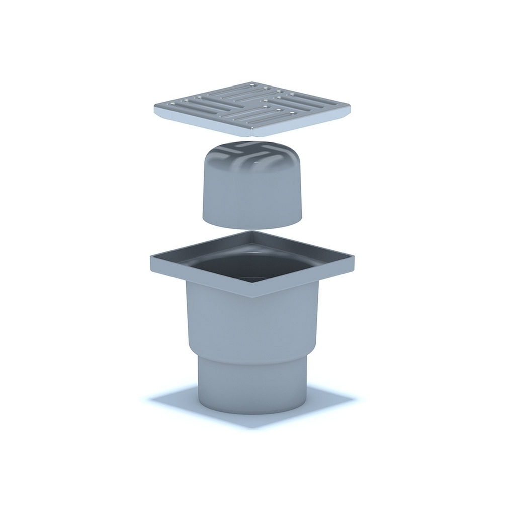 110 трап с вертик. спуском, н/рег решетка 150х150 нерж АНИ пласт TA1212