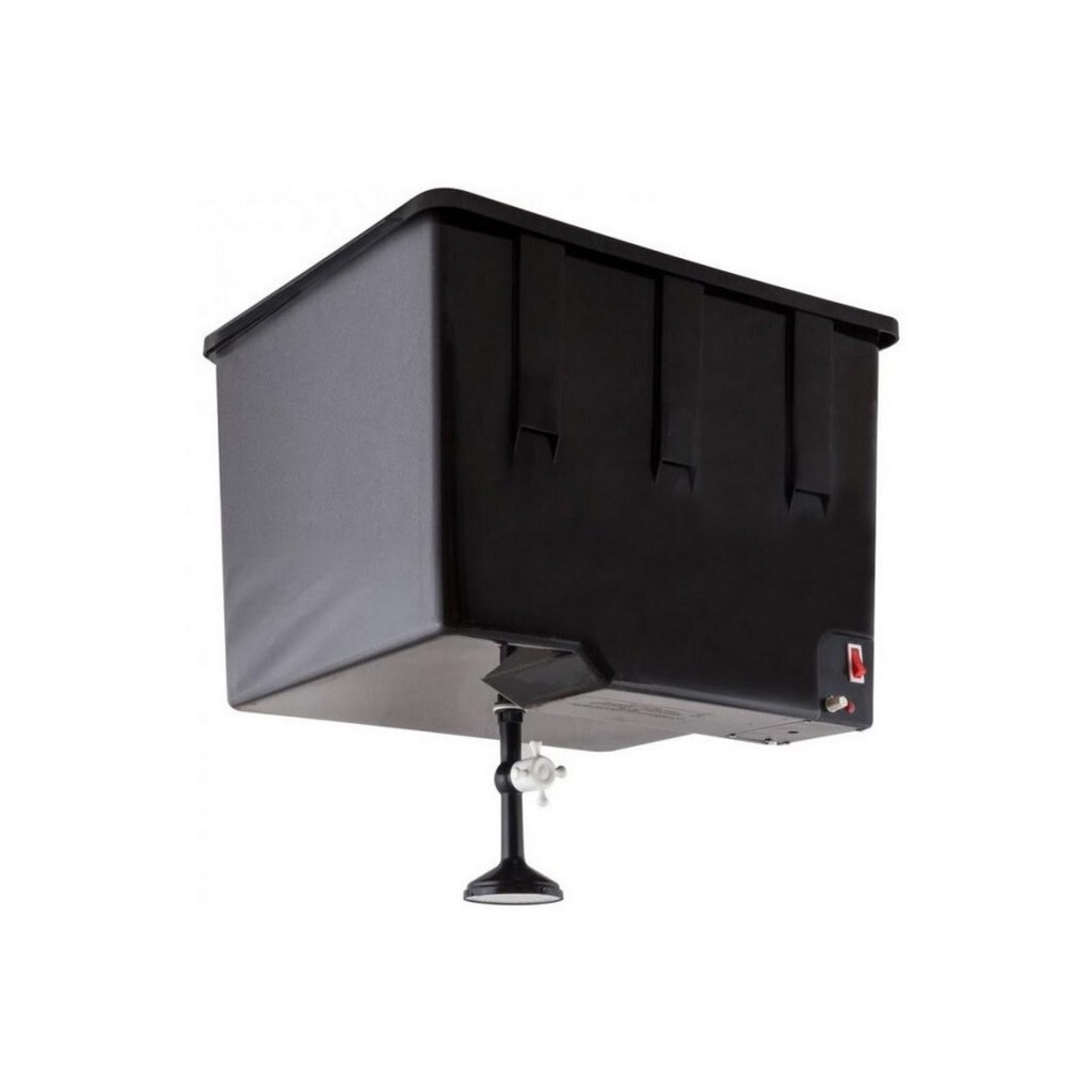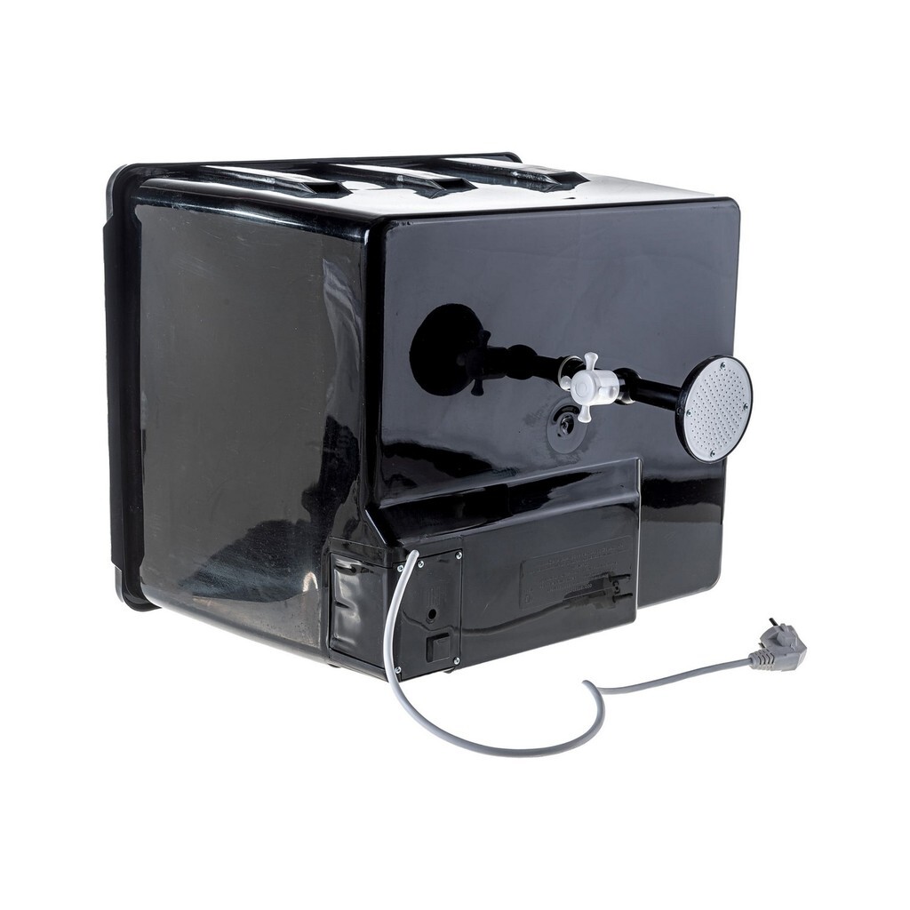 Бак предназначен для приема душевых процедур, как в составе уличной душевой кабинки, так и внутри помещения.Бак имеет возможность регулировать температуру нагрева до 55 градусов С, снабжен сетевым выключателем и индикацией включения ТЭНа.Корпус и крышка бака выполнены из черного пластика, что позволяет воде нагреваться от солнечных лучей.Бак комплектуется душевой лейкой с краном.