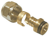 Латунный фитинг с накидной гайкой и обжимным кольцом для подключения металлополимерной (металлопластиковой) трубы к коллектору VALTEC с выходами диаметром 1/2", стандарт соединения – «конус».