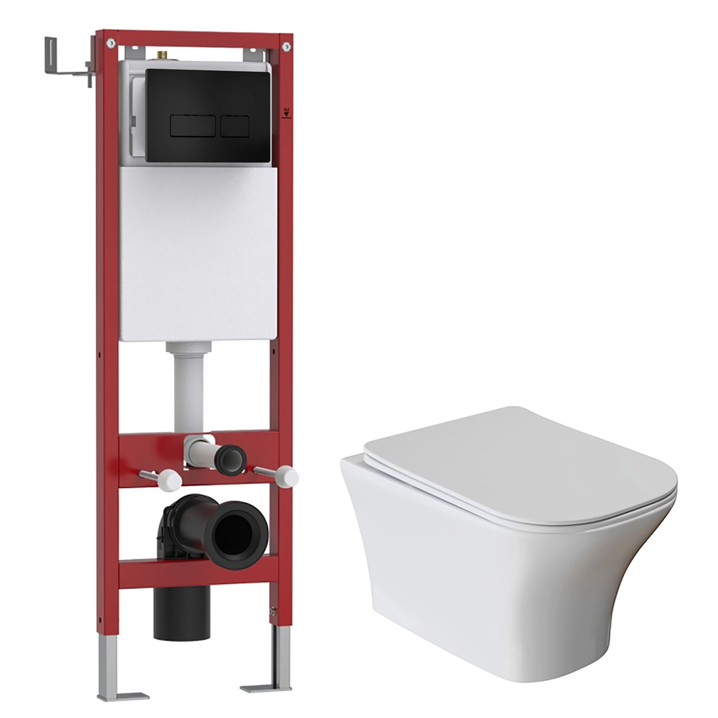 Комплект WAVE "Система инсталляции МЕХАНИКА 380+унитаз "CITY"+прямоугольная кнопка V2 черная"