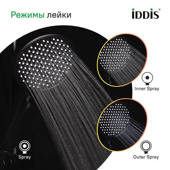 Лейка для душа IDDIS ESP3FBRi18 "Esper" D130мм, 3 режима ЧЕРНЫЙ матовый, коробка