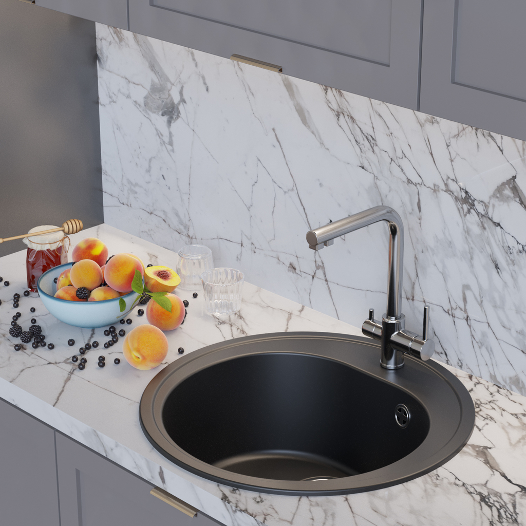 Мойкa ML-GM11 КОМФОРТ круглая, ультра-черная (344), 500мм (глуб. чаши 180)