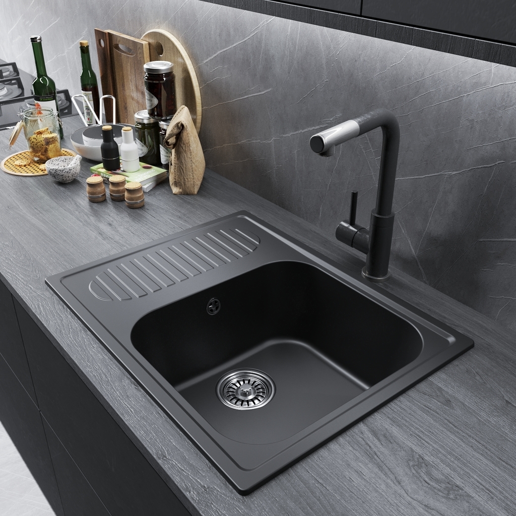 Мойка ML-GM18 КОМФОРТ с крылом, ультра-черная (344), 640*490*190мм