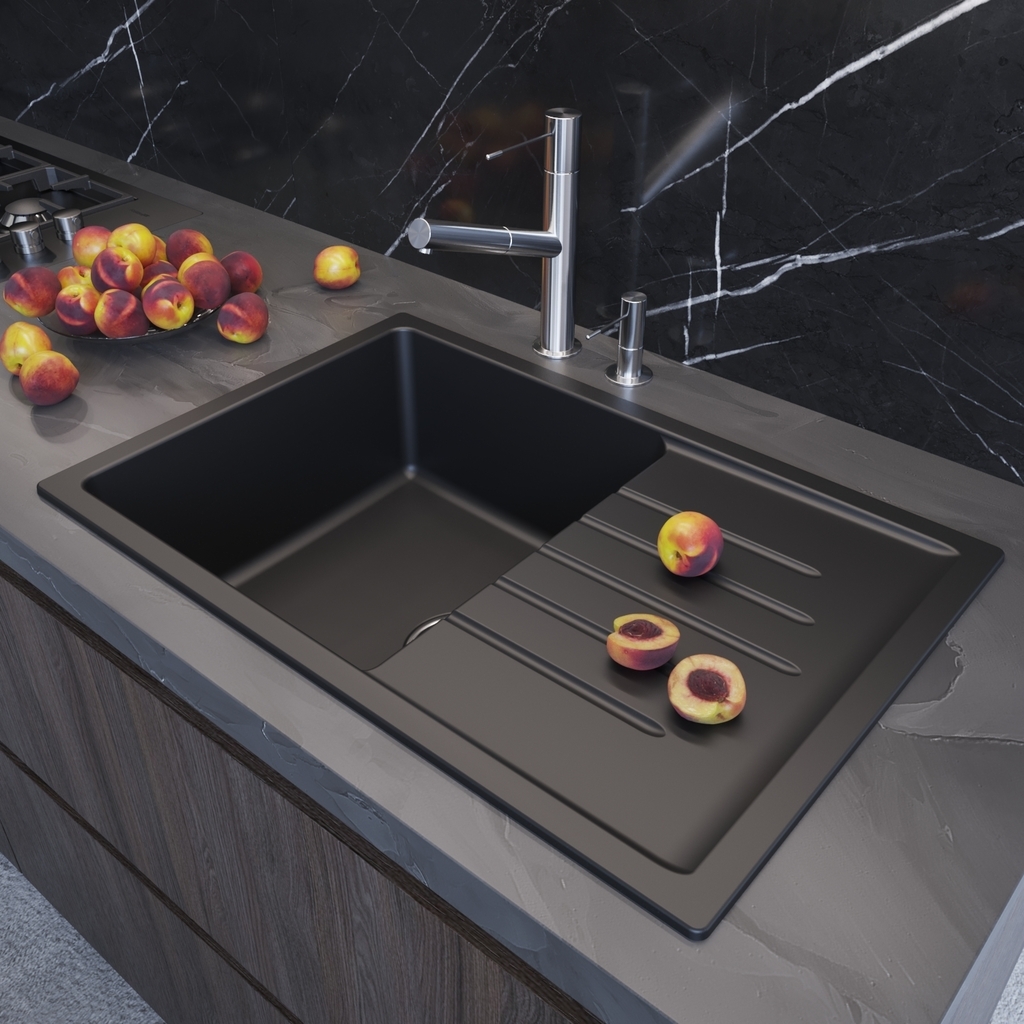 Мойка ML-GM19 КОМФОРТ с крылом, ультра-черная (344), 750*500*200мм