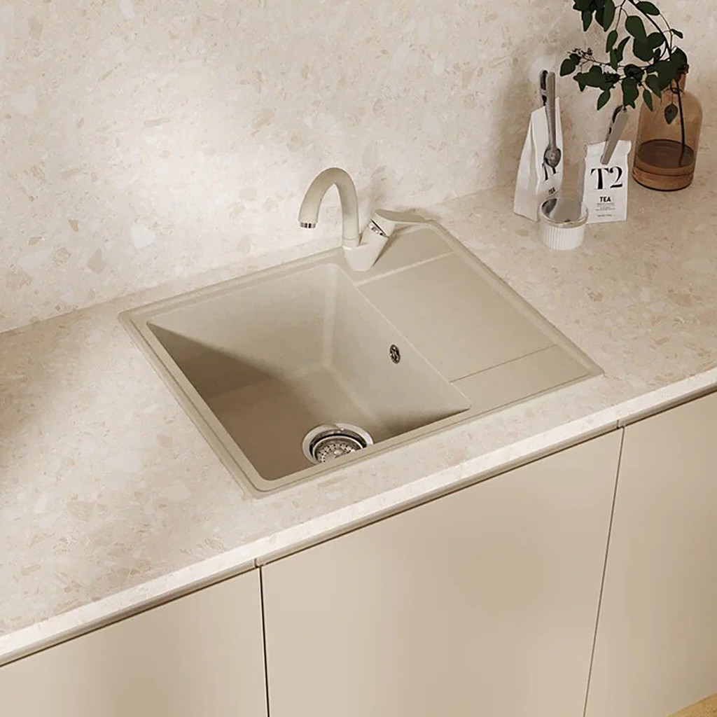 Мойкa ML-GMU05 УЛЬТРА с крылом, бежевый камень, 575*495 мм (глуб. чаши 190)