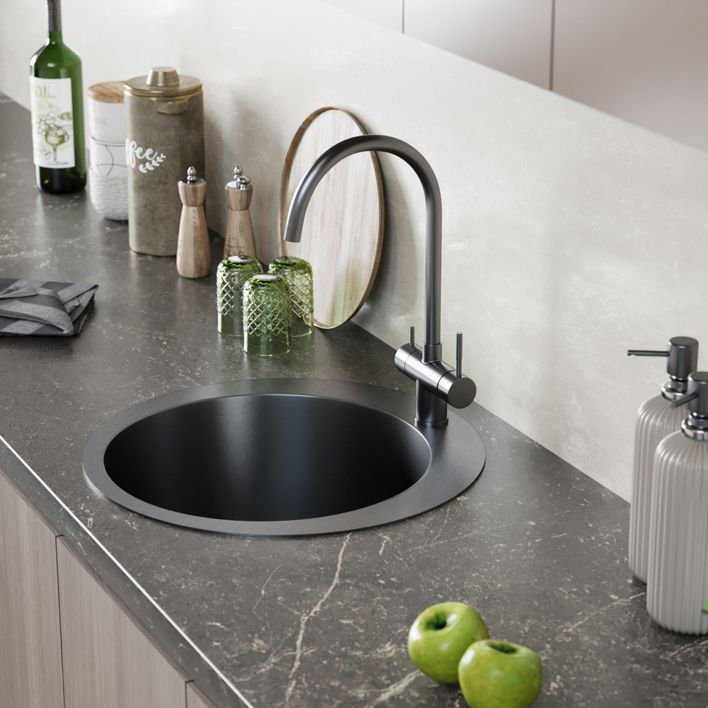 Мойка настол.монтаж D50 (3,0) вып 3 1/2 круглая MIXLINE PRO 20см с сифоном (черный графит)