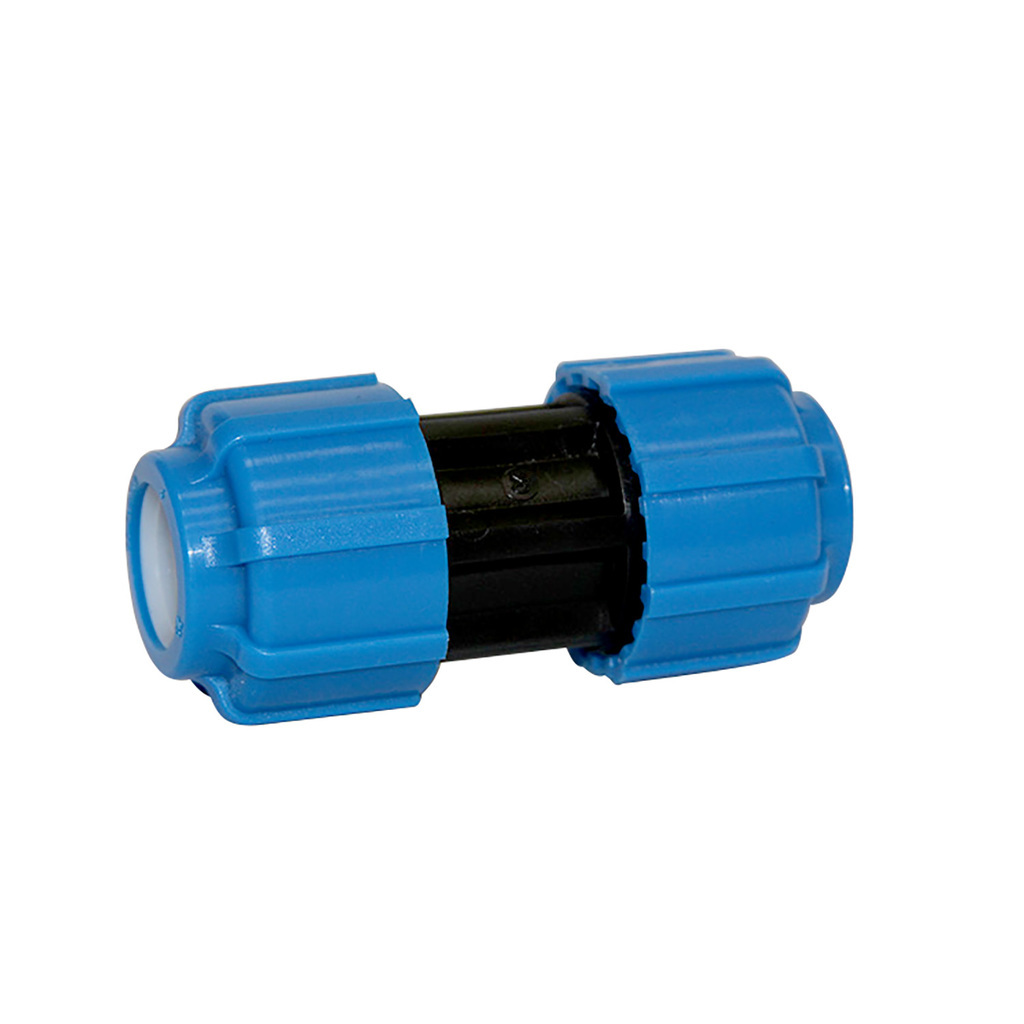 Муфта компрессионная соединительная предназначена для обеспечения надежного соединения двух полиэтиленовых труб равного диаметра между собой при строительстве систем питьевого или технического водопровода, систем напорной или безнапорной канализации, для устройства кабельных каналов из ПНД труб с рабочим давлением до 16 атмосфер для труб диаметром от 20 мм до 63 мм.