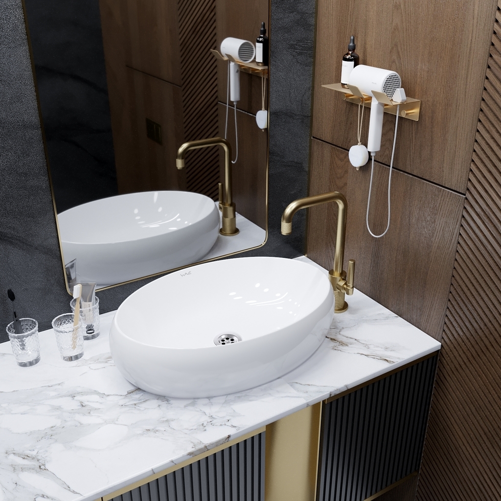 Умывальник WAVE Comfort комфортен в использовании, а также прост в уборке за счет округлой формы стенок. Умывальники WAVE - прекрасный вариант для обустройства как больших, так и маленьких ванных комнат. Их отличают эффектный вид, разнообразие форм и размеров.Накладные умывальники WAVE наилучшим образом сочетают в себе эстетичность и практичность.Их можно расположить в любом удобном месте, поскольку нет необходимости фиксации к вертикальной поверхности.Установленный на столешницу умывальник выглядит стильно и красиво и зачастую служит главным акцентом ванной комнаты. Кроме того, с такой установкой появляется возможность рационально использовать свободную площадь столешницы вокруг умывальника. Умывальники WAVE изготовлены из качественной керамики, характеризуются повышенными эксплуатационными показателями, практичностью, легким уходом.