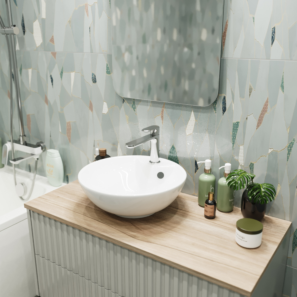 Умывальник WAVE Koral - идеальное дополнение к любой современной или традиционной ванной комнате. Он гармонично сочетается с различными стилями интерьера, создает элегантную и стильную атмосферу. Умывальники WAVE - прекрасный вариант для обустройства как больших, так и маленьких ванных комнат. Их отличают эффектный вид, разнообразие форм и размеров.Накладные умывальники WAVE наилучшим образом сочетают в себе эстетичность и практичность.Их можно расположить в любом удобном месте, поскольку нет необходимости фиксации к вертикальной поверхности.Установленный на столешницу умывальник выглядит стильно и красиво и зачастую служит главным акцентом ванной комнаты. Кроме того, с такой установкой появляется возможность рационально использовать свободную площадь столешницы вокруг умывальника.Умывальники WAVE изготовлены из качественной керамики, характеризуются повышенными эксплуатационными показателями, практичностью, легким уходом.
