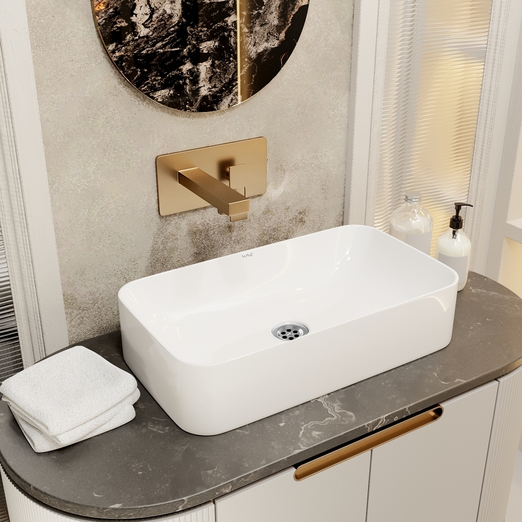 Умывальник WAVE Promo отличает четкая геометрия и возможность сочетания с любым современным интерьером ванной комнаты. Умывальники WAVE - прекрасный вариант для обустройства как больших, так и маленьких ванных комнат. Их отличают эффектный вид, разнообразие форм и размеров.Накладные умывальники WAVE наилучшим образом сочетают в себе эстетичность и практичность.Их можно расположить в любом удобном месте, поскольку нет необходимости фиксации к вертикальной поверхности.Установленный на столешницу умывальник выглядит стильно и красиво и зачастую служит главным акцентом ванной комнаты. Кроме того, с такой установкой появляется возможность рационально использовать свободную площадь столешницы вокруг умывальника. Умывальники WAVE изготовлены из качественной керамики, характеризуются повышенными эксплуатационными показателями, практичностью, легким уходом.