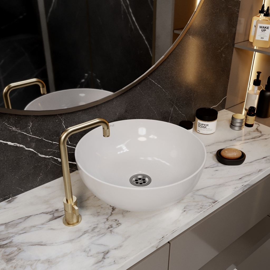 Умывальник WAVE Round за счет компактных размеров не займет много место в ванной комнате. Круглая форма чаши будет особо хорошо смотреться в классическом интерьере. Умывальники WAVE - прекрасный вариант для обустройства как больших, так и маленьких ванных комнат. Их отличают эффектный вид, разнообразие форм и размеров.Накладные умывальники WAVE наилучшим образом сочетают в себе эстетичность и практичность.Их можно расположить в любом удобном месте, поскольку нет необходимости фиксации к вертикальной поверхности.Установленный на столешницу умывальник выглядит стильно и красиво и зачастую служит главным акцентом ванной комнаты. Кроме того, с такой установкой появляется возможность рационально использовать свободную площадь столешницы вокруг умывальника. Умывальники WAVE изготовлены из качественной керамики, характеризуются повышенными эксплуатационными показателями, практичностью, легким уходом.
