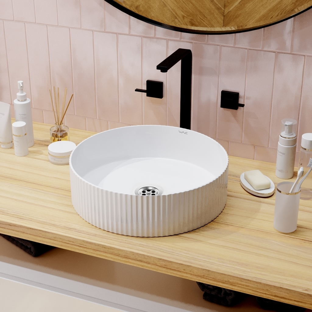 Миниатюрный умывальник WAVE Solo станет идеальным решением для небольшой ванной комнаты. Декоративная обработка бортика украшает умывальник, а вместе с ним и весь интерьер ванной комнаты. Умывальники WAVE - прекрасный вариант для обустройства как больших, так и маленьких ванных комнат. Их отличают эффектный вид, разнообразие форм и размеров.Накладные умывальники WAVE наилучшим образом сочетают в себе эстетичность и практичность.Их можно расположить в любом удобном месте, поскольку нет необходимости фиксации к вертикальной поверхности.Установленный на столешницу умывальник выглядит стильно и красиво и зачастую служит главным акцентом ванной комнаты. Кроме того, с такой установкой появляется возможность рационально использовать свободную площадь столешницы вокруг умывальника. Умывальники WAVE изготовлены из качественной керамики, характеризуются повышенными эксплуатационными показателями, практичностью, легким уходом.