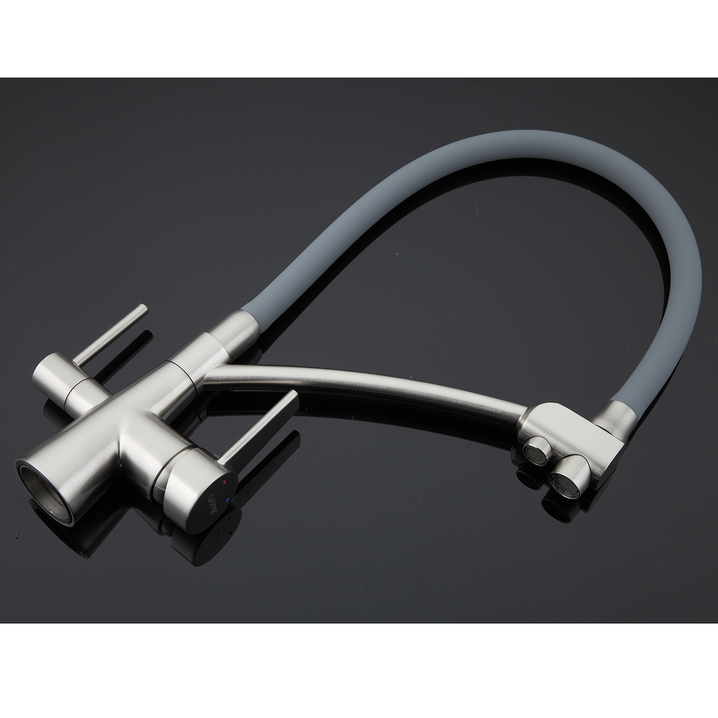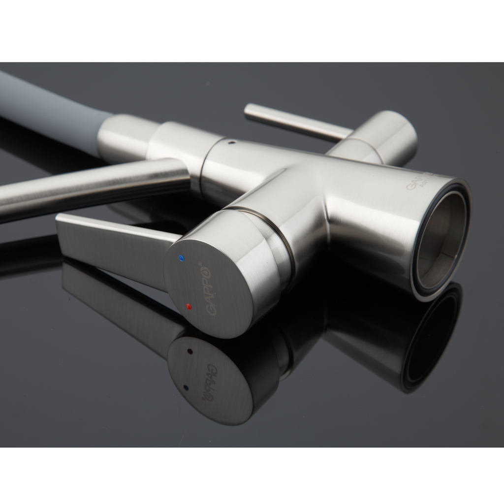 Смеситель для кухни 35к G4398 GAPPO гибкий излив, с вых. для питьевого фильтра, СЕРЫЙ-сатин