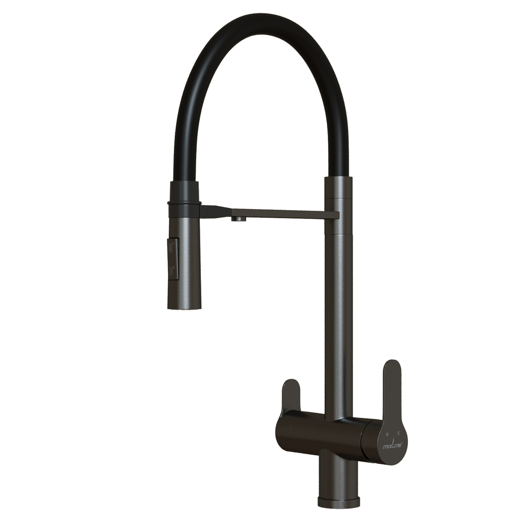 Смесители для кухни MIXLINE с гибким изливом сочетают в себе современный дизайн и функциональность, делая задачи на кухне проще и удобнее. Излив фиксируется магнитным замком за одну секунду.Смесители разработаны для тех, кто ценит свое время, комфорт и заботится о здоровье.Двойная система подачи воды: основной кран - для обычной воды, а специальный дополнительный кран- для чистой питьевой, поступающей прямиком из системы фильтрации. Благодаря возможности вращения на 360 градусов, вы сможете легко направить поток воды в любую точку раковины, обеспечив удобное мытье крупной посуды или наполнении высоких емкостей. Высокотехнологичные материалы: корпус из нержавеющей стали SUS 304 гарантирует антикоррозийную стойкость и долгий срок службы. Прочный силикон с EPDM-покрытием гибкий, долговечный и приятный на ощупь.Аэратор Neoperl предотвращает разбрызгивание и позволяет экономить воду без потери комфорта.Керамический картридж Sedal обеспечивает плавную и точную регулировку воды, а также абсолютную надежность и тишину в работе.Модели легко устанавливаются на столешницы любой толщины. Гладкая поверхность отталкивает грязь и легко очищается за секунды.Для удобства монтажа в комплекте идет всё необходимое: крепежные элементы, гибкая подводка, комплект прокладок.