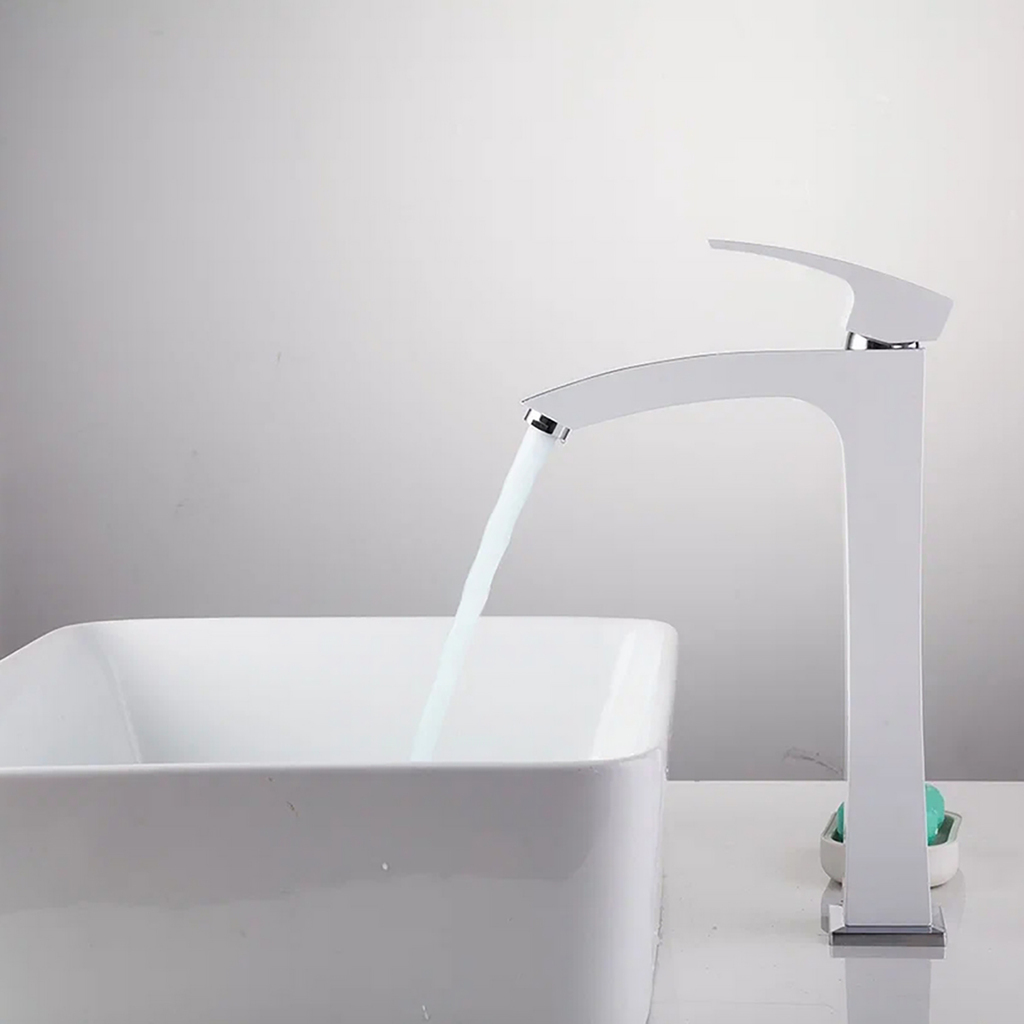 Смеситель для раковины 35к G1007-18 GAPPO высокий, литой, БЕЛЫЙ-ХРОМ