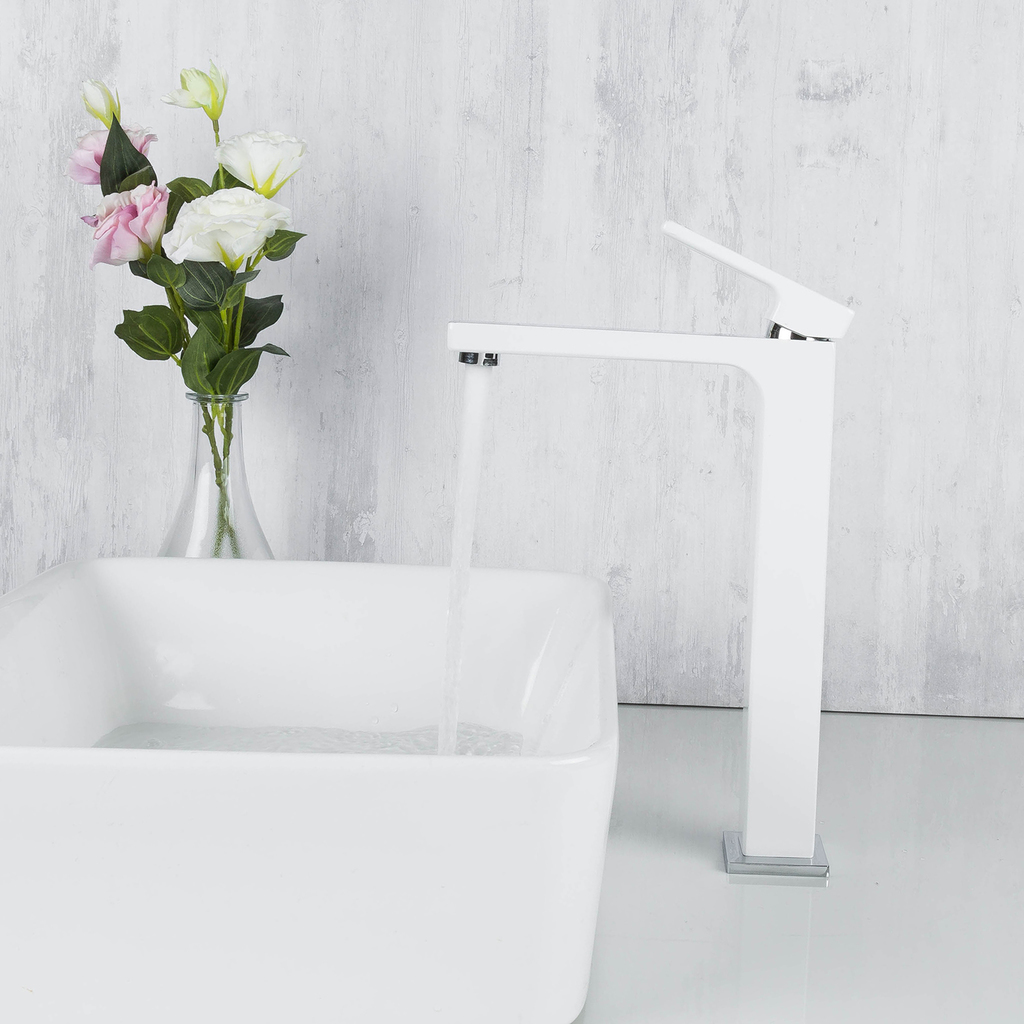 Смеситель для раковины 35к G1017-2 GAPPO литой, высокий, БЕЛЫЙ-ХРОМ