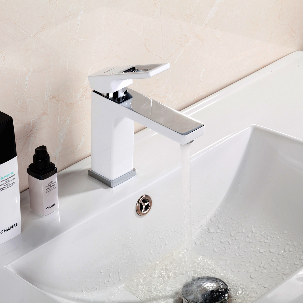 Смеситель для раковины 35к G1017-8 GAPPO литой, п/гайку, БЕЛЫЙ-ХРОМ