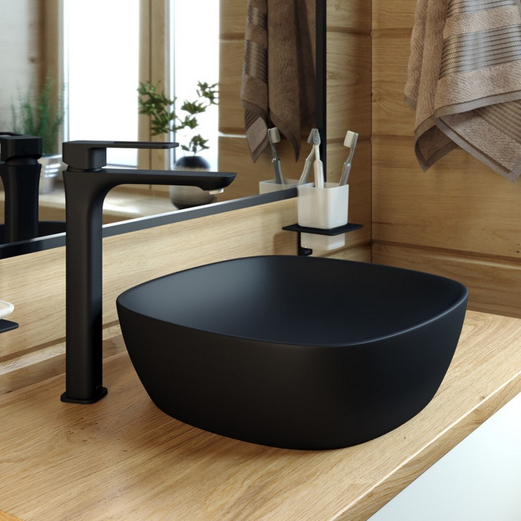 Смеситель для раковины 35к IDDIS SLIBL01i01 "Slide" литой, высокий, ЧЕРНЫЙ матовый