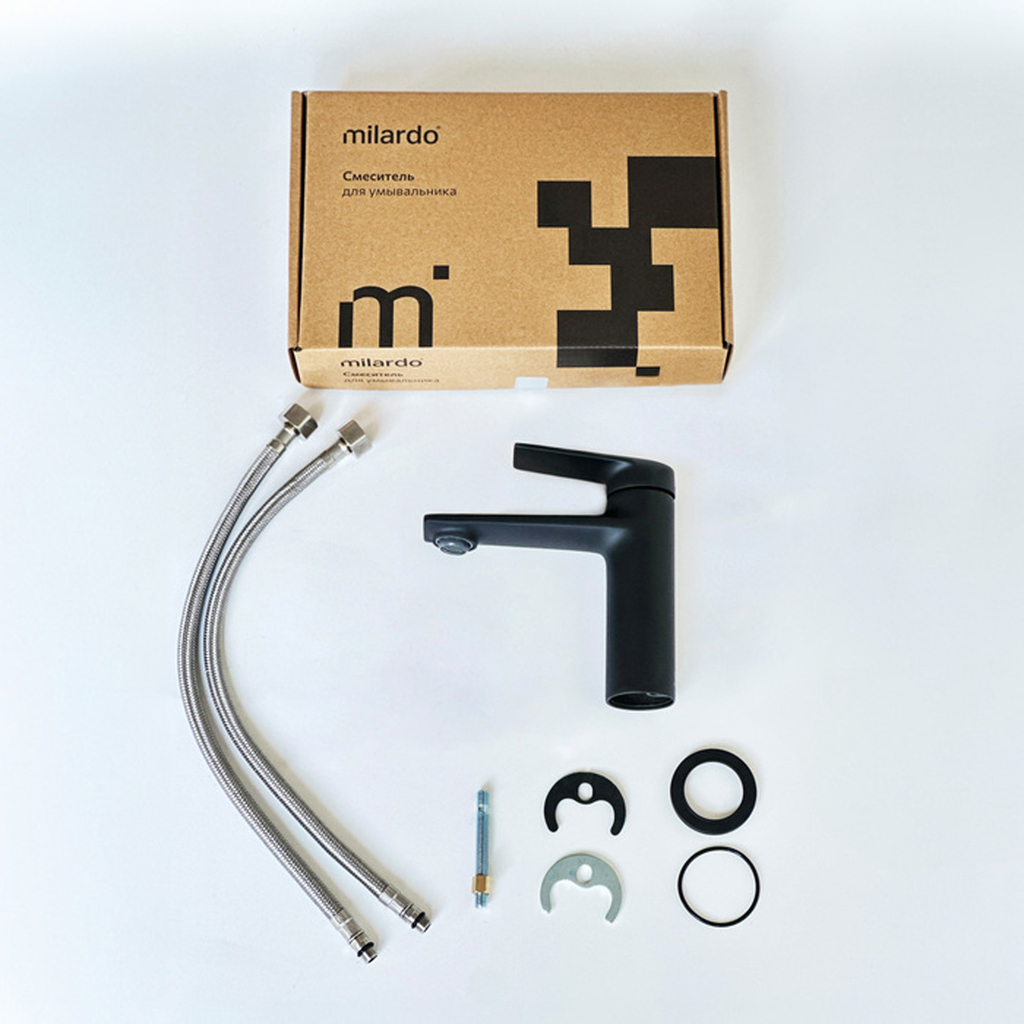 Смеситель для раковины 35к Milardo AZUBL00M01 "Azure" литой, п/шпильку, ЧЕРНЫЙ матовый