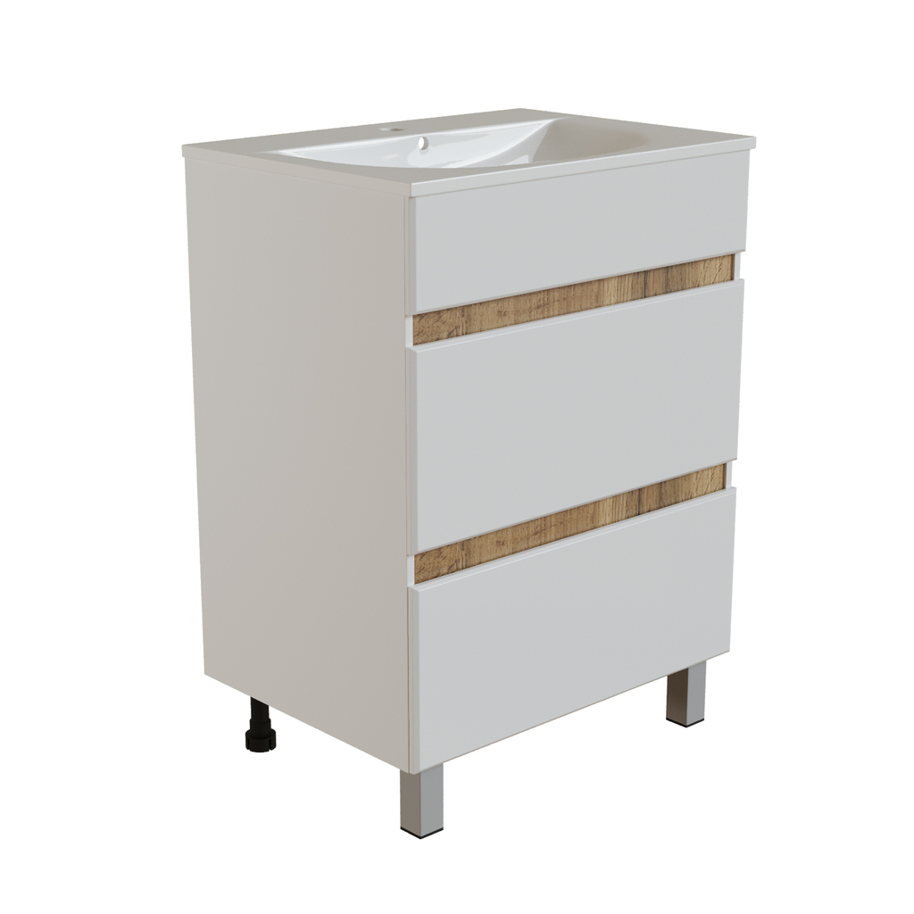 Тумба д/ванной "БРИКС-50" 2 ящика белый/дуб вотан под рак."Breeze 50" мебельный (Sanita Luxe) (ПВХ)