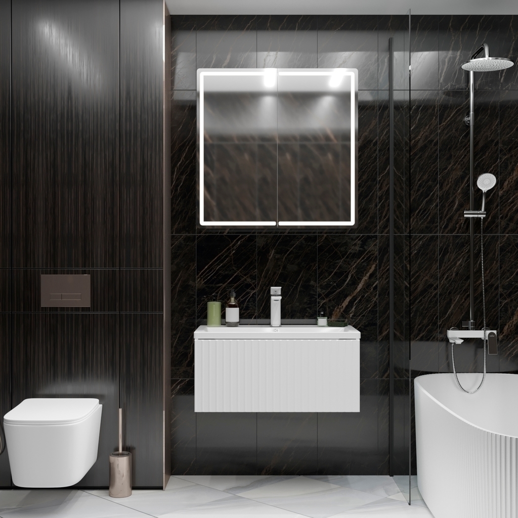 Стильная коллекция ВЕКТОР создана для поклонников геометрии в дизайне. Она идеально впишется в современный интерьер и расставит акценты в монохромном дизайне.Рельефный фасад тумб добавит объемные текстуры в интерьер ванной комнаты.Выдвижные ящики с механизмом открывания push-to-open обеспечивают бесшумное и плавное закрывание.