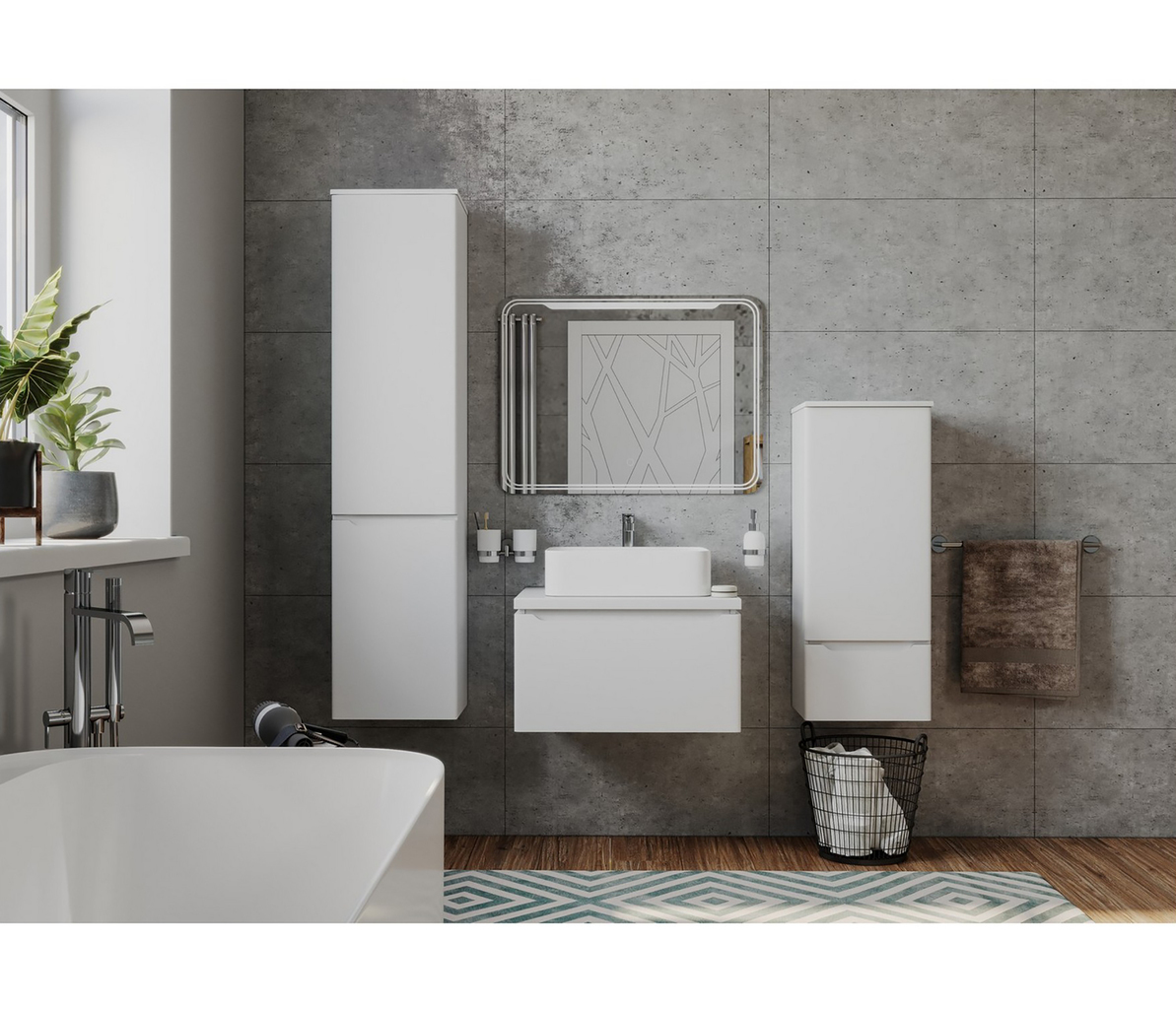 Новая коллекция мебели для ванной комнаты ««ВИКТОРИЯ» тм Mixline представлена в трех цветовых решениях: белом, дуб светлый и графит.Цветовое решение подобрано таким образом, чтобы мебель идеально вписалась в интерьеры как в светлых, так и в темных тонах.Комплекты со светлыми фасадами станут органичной частью пространств в стилистике мягкого минимализма, а модель в благородном темно-сером цвете дополнит более брутальные интерьеры.Тумба на выбор комплектуется керамическими раковинами Джой-46, Триумф-56 или Ringo-53 тм DREJA.Зеркало Виктория или зеркальный шкаф со светодиодной подсветкой и сенсорным выключателем создают единый гармоничный ансамбль с минималистичной мебелью тм Mixline.